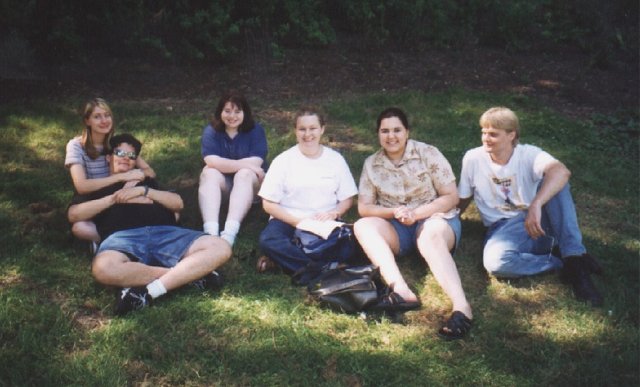 Reine, Enigma, Wolfie, Andrea, ami & Zaffy sitting under a big shady tree in Stanley Park (Simon)
