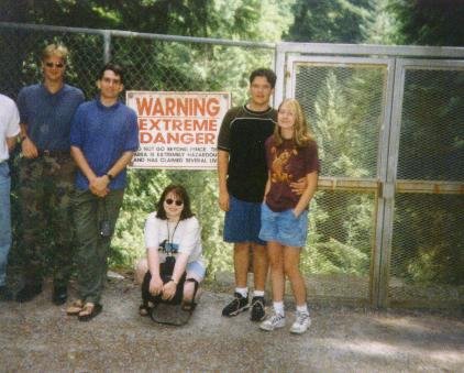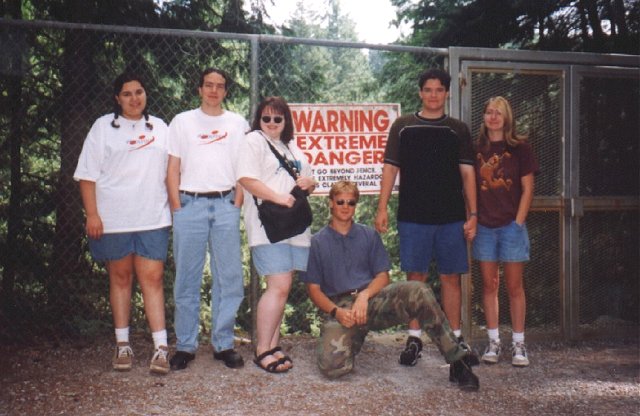 ami, Omni, Wolfie, Zaffy, Enigma & Reine at the warning! danger sign at the Suspension Bridge (Simon)