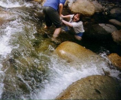 Wolfie's expression after falling into cold water after slipping on a rock. Simon's helping pull her out (ami)