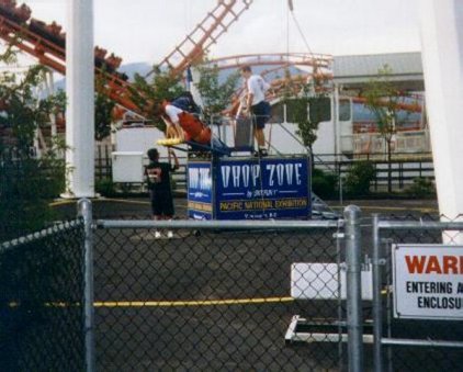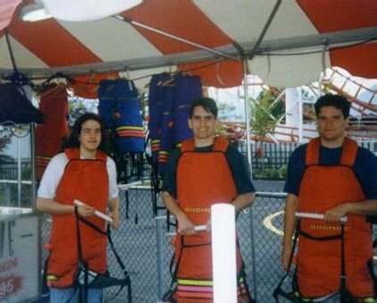 Omni, Simon & Enigma getting on their attire for the Drop Zone ride (nice view!) (ami)