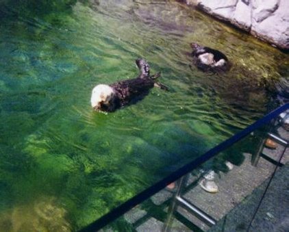 Sea otters swimming around at the Aquarium (ami)