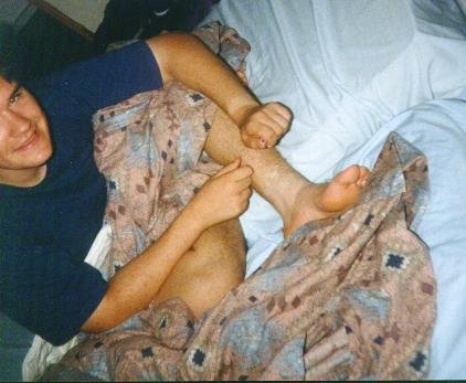 Enigma showing us his leg(?) before sleepytime at Simon's house (ami)