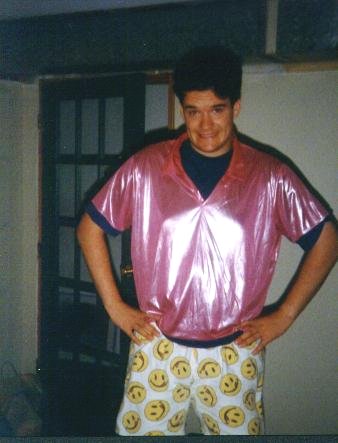 Enigma showing off his chic fashion sense, equipped with ami's shiny shirt and his smiley face boxers (ami)Tuesday, 8/11