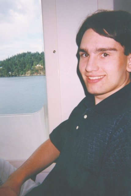 Simon sitting on the ferry heading back from Victoria, taken on 8/17 (Wolfie)