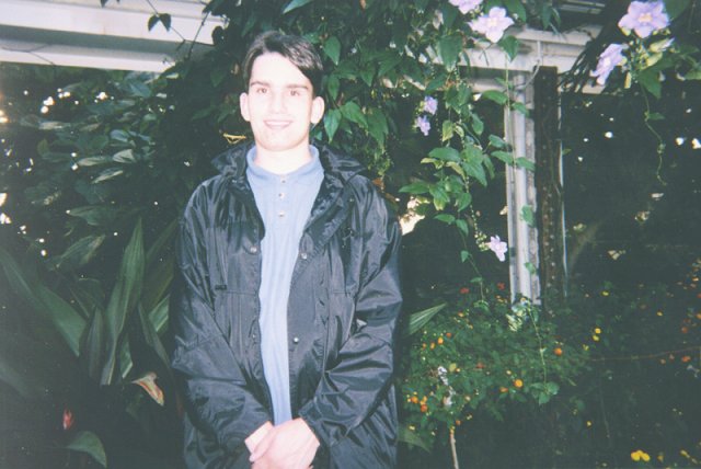Simon in the butterfly room at the Crystal Gardens in Victoria, taken on 8/16 (Wolfie)